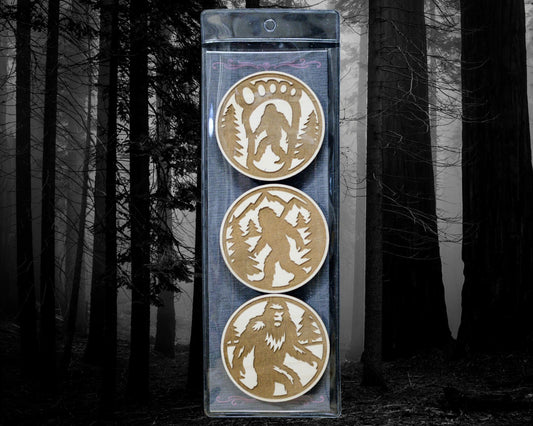 Bigfoot Sasquatch Wood Magnet Set - Set of 3 - Cryptid Art, PNW Forest Decor, Gift for Hikers & Campers, Fridge Magnets