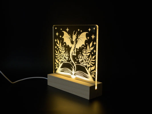 Book Dragon Lighted Sign: Fantasy Bookshelf Decor LED