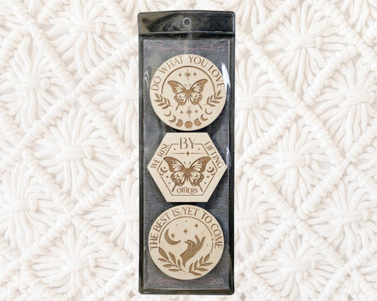 Affirmation Wood Magnets - Set of 3 - Inspirational Quote Gift, Positive Vibes Boho Fridge Decor