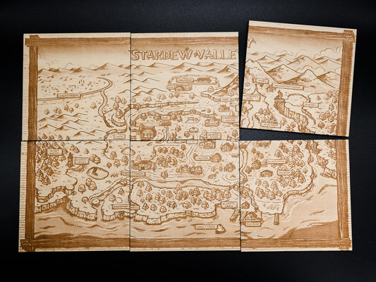 Stardew Valley Coasters: Engraved Wood Pelican Town Map, Set of 6