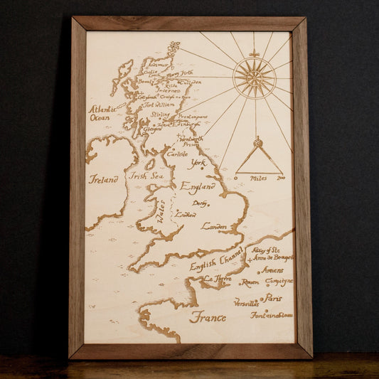 Outlander Map: Scotland from the World of the Outlander Book/TV Show Wood Engraved Display Map