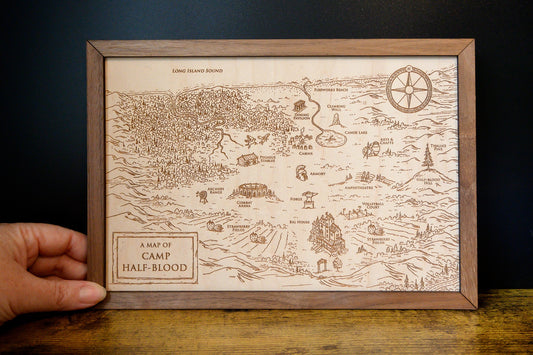 Percy Jackson: Camp Half-Blood Wood Engraved Display Map