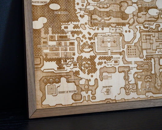 Legend of Zelda Link to the Past Wood Engraved Display Map