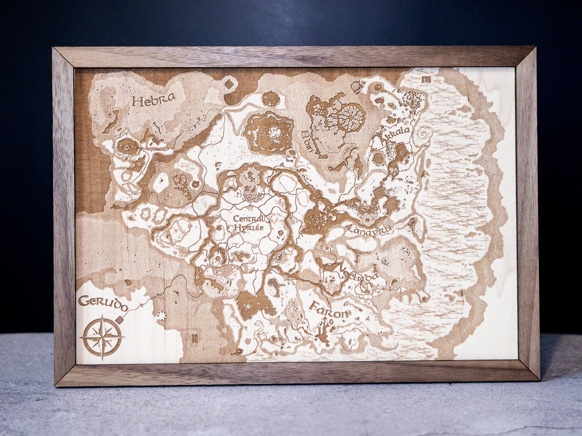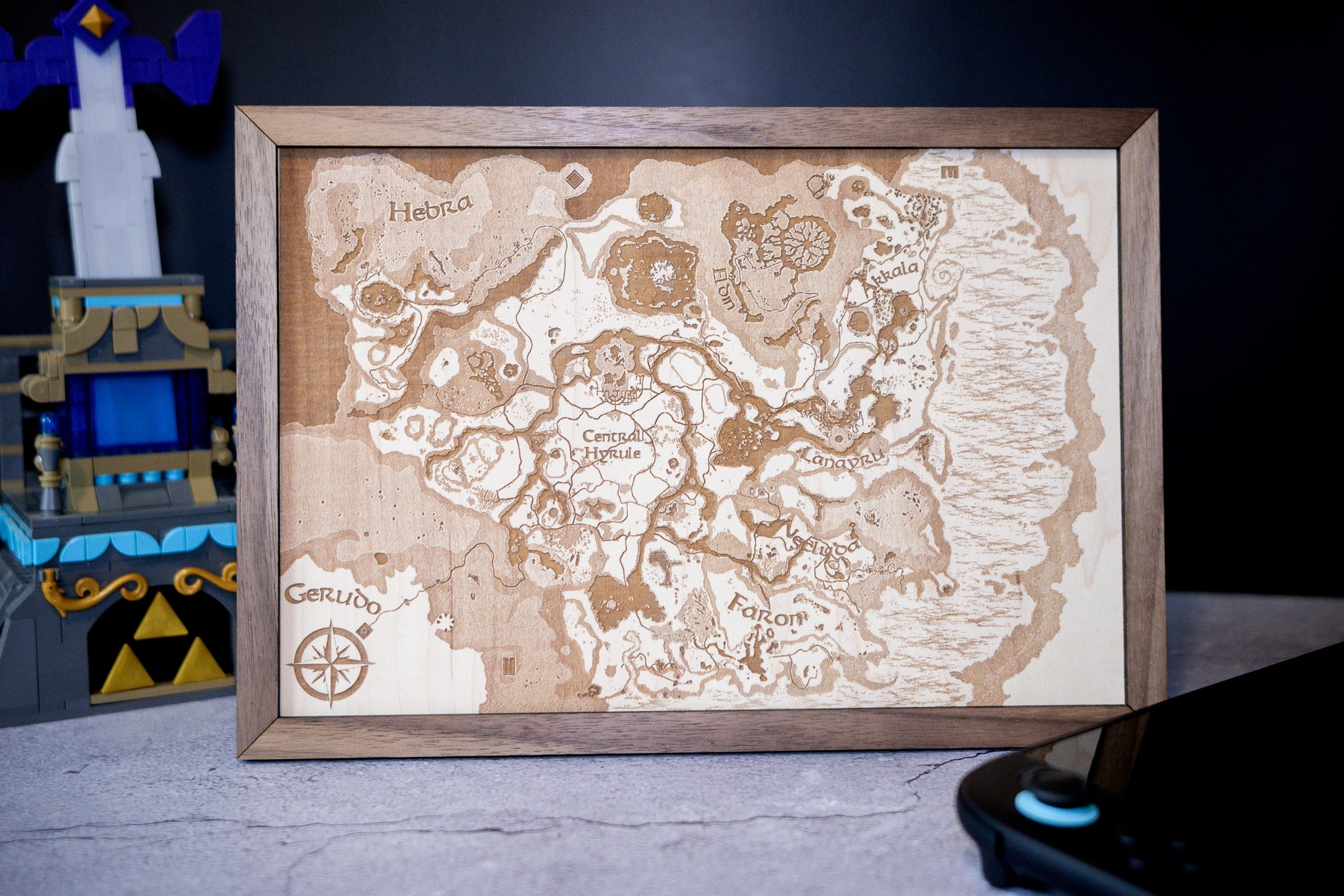 Breath of the Wild Map, Zelda Wood Engraved Display Map Art